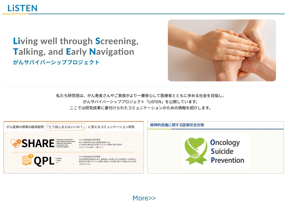 2026.03.31 研究 がんサバイバーシッププロジェクト 当講座で推進している共同研究LiSTEN - Living well through Screening, Talking, and Early Navigation:がんサバイバーシッププロジェクトのポータルサイト「LiSTEN」をご紹介します。 現在、Li…